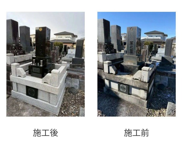 2026.01.25 山口石材の今月の墓石洗浄の施工例です。気になる方は是非お問い合わせください。(見本なのでお墓の文字部分は意図的に加工しております。) 旧式墓石の整理施工を致しました。施工後と施工前をご覧ください。お客様のご要望に合わせて施工します。